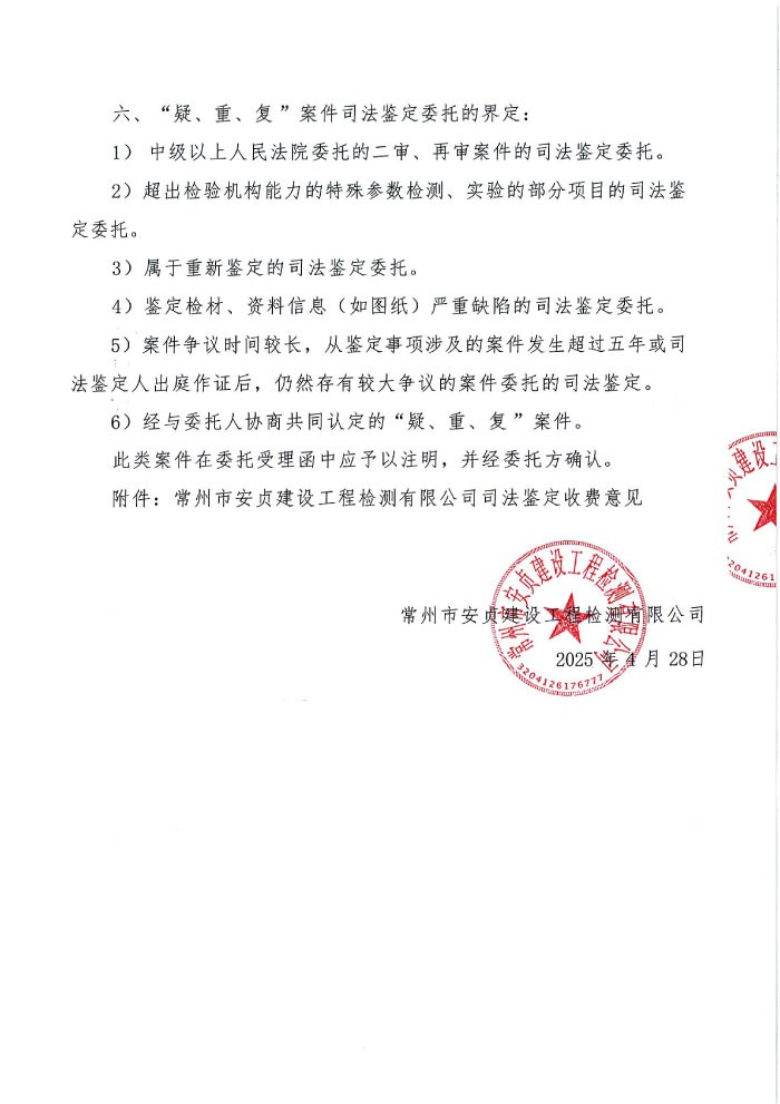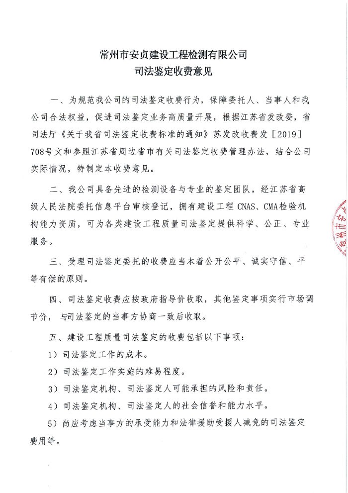 常州市安贞建设工程检测有限公司工程质量检测和建筑材料试验收费价目表